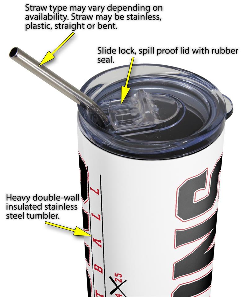 Lions Softball 24x25 20oz Tumbler Stainless Steel, Double Wall Insulated, Straw, Spill Proof Lid